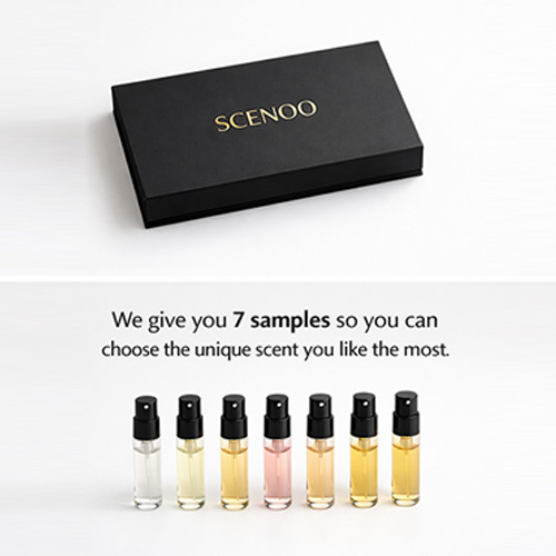 The SCENOO Discovery Set gives you a chance to explore a curated selection of fragrance samples before choosing your signature scent.